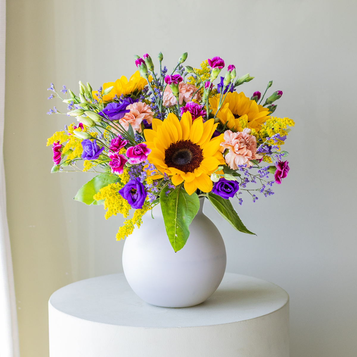 Los girasoles pueden llegar un poco cerrados al estar en la caja. ¡Se abrirán con la luz!