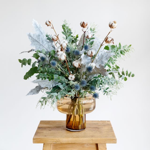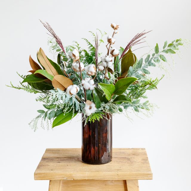 Pero no todo va a ser rojo. Las flores blancas como las rosas también son protagonistas totales en esta temporada. Incluso puedes jugar con algunas plantas con flor como el ciclamen, la anémona y las tan de moda ramas de algodón.