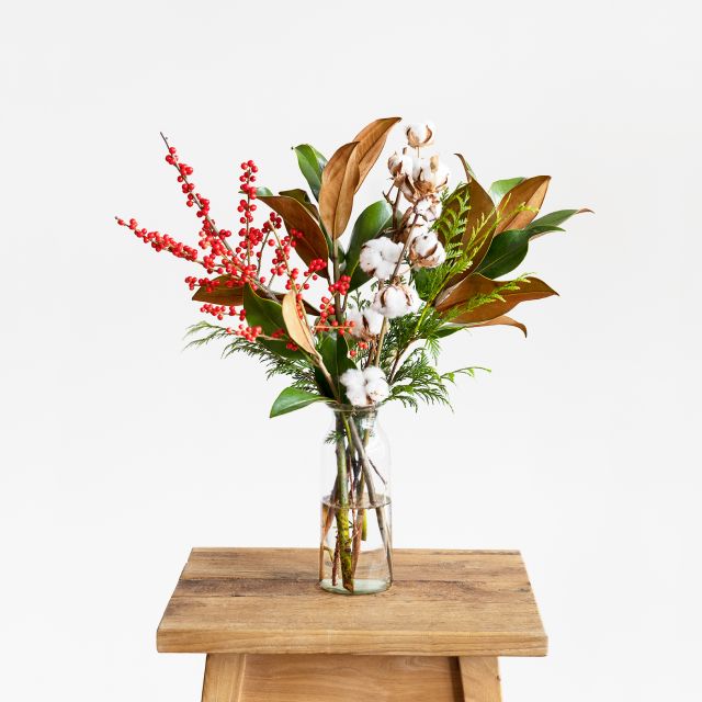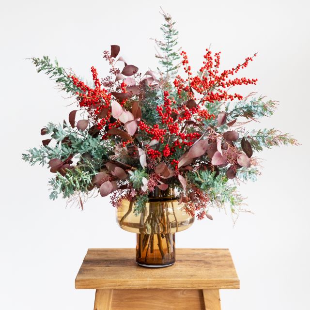 ¿Y qué me dices del acebo o ilex? Seguro que te suenan esas ramas con bayas en color rojo intenso. Son los perfectos compañeros de nuestros ramos durante la temporada navideña y no podía ser de otra forma. Estos pequeños tallos están hechos de Navidad pura.