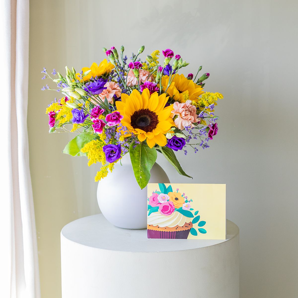 Pack Cumple: Girasoles con Jarrón y Tarjeta